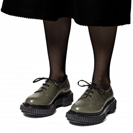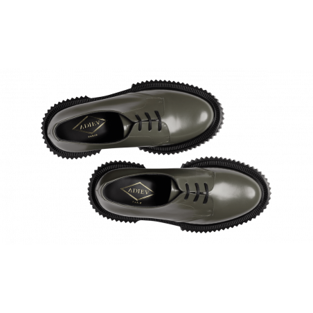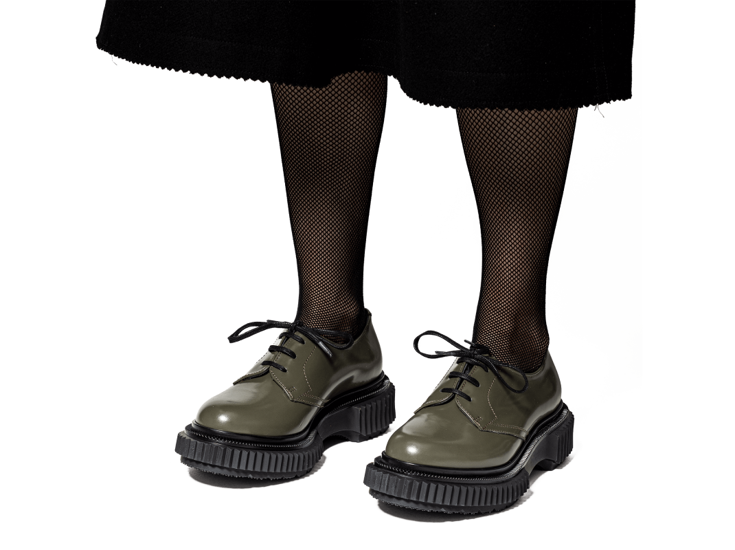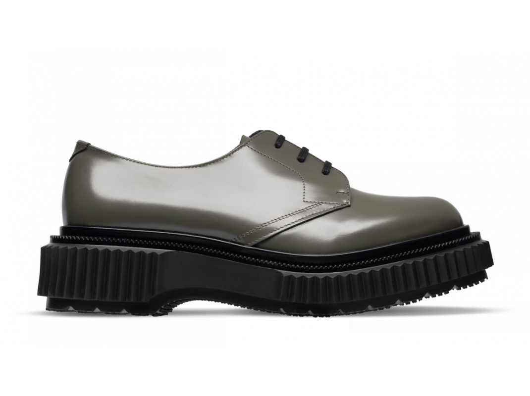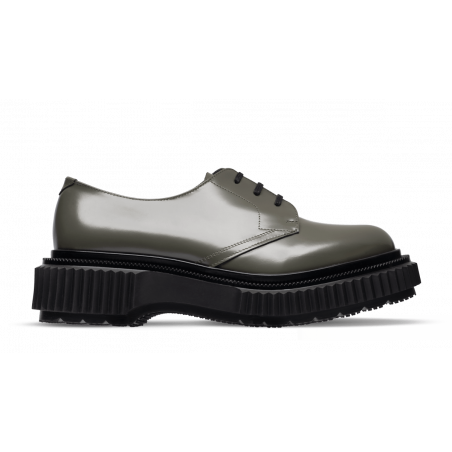Polished leather derby, injected rubber sole