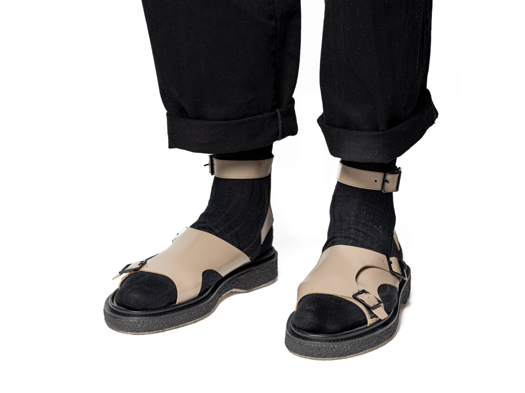 Polished leather Tropezian sandal, crepe sole