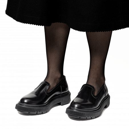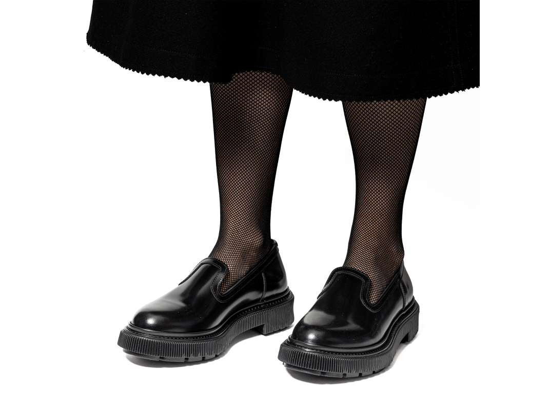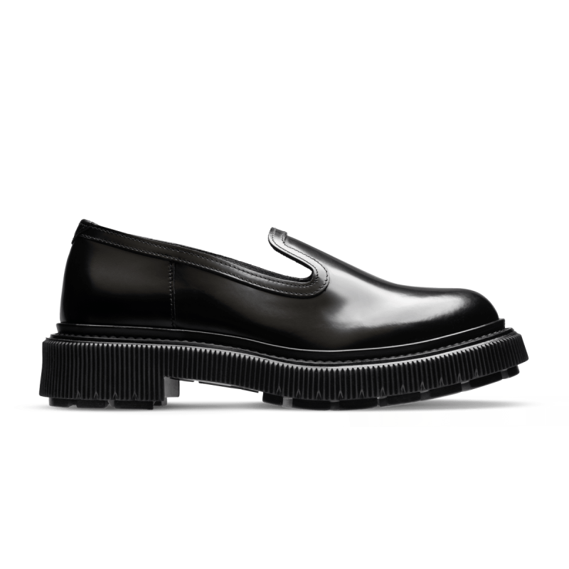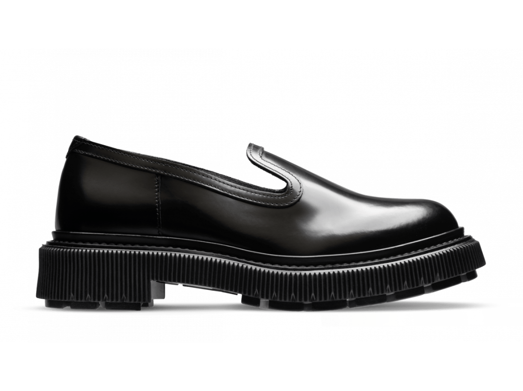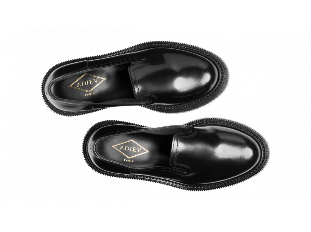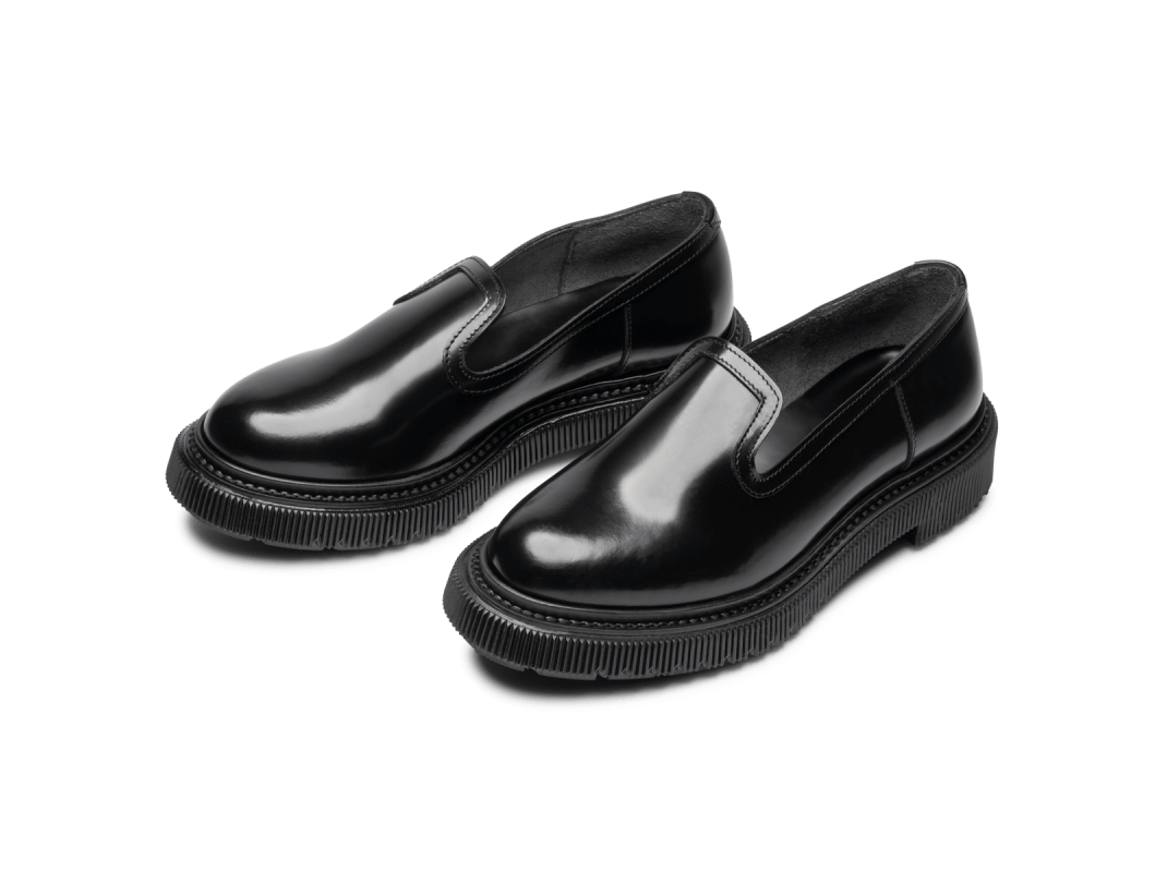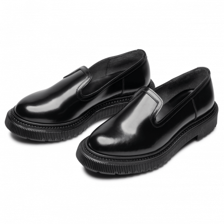 Polished leather sleeper, injected rubber sole