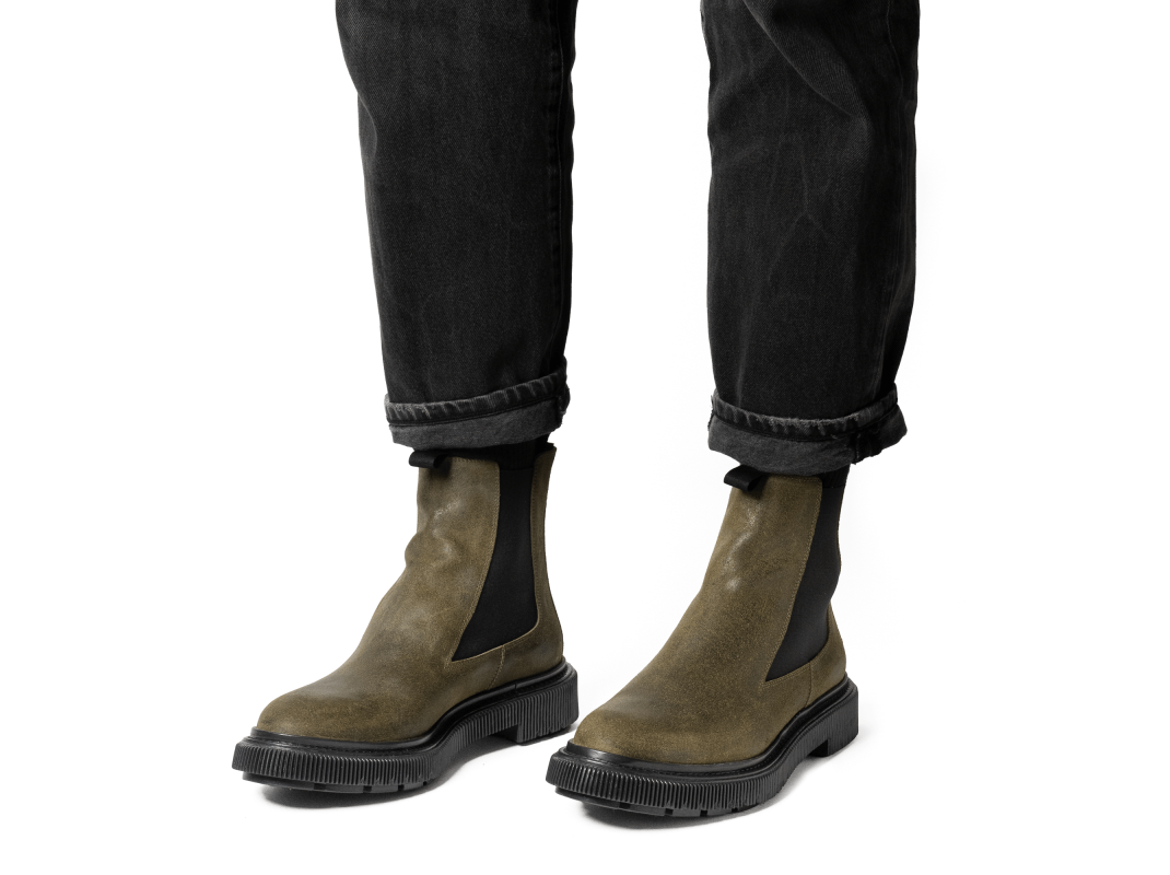 Suede leather boots, injected rubber sole