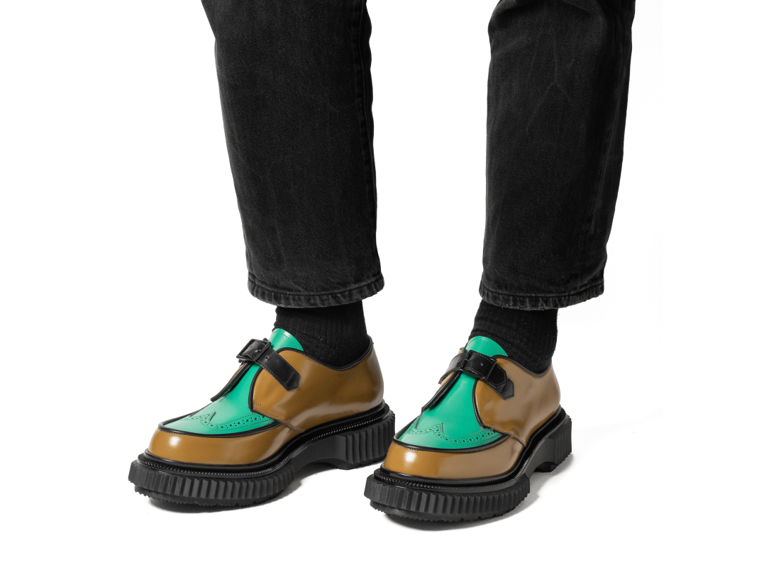 Polished leather buckled derby, injected rubber sole