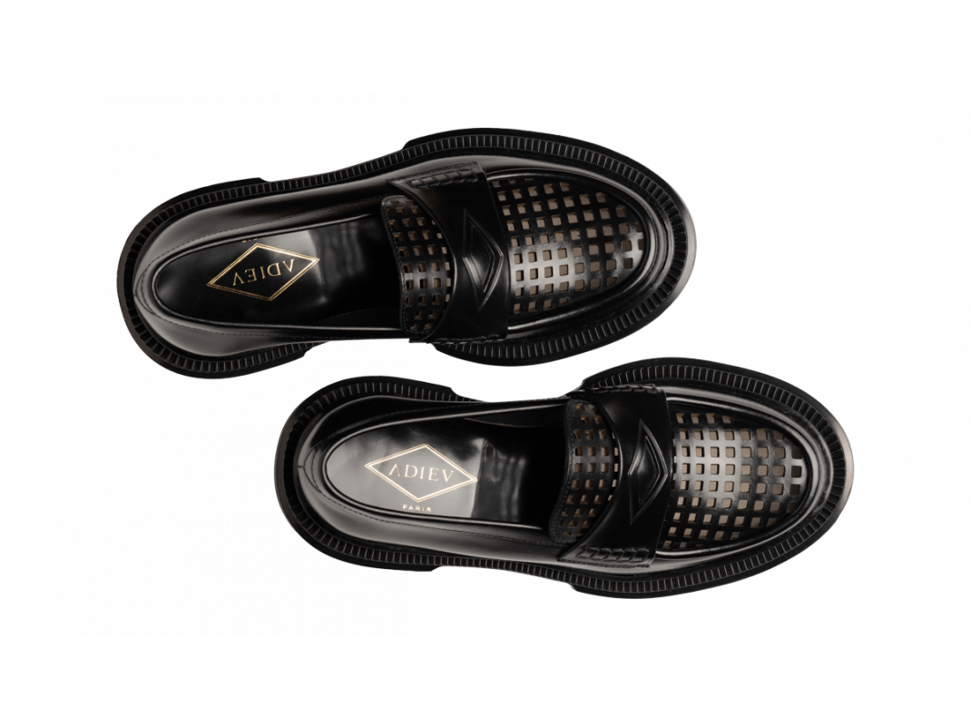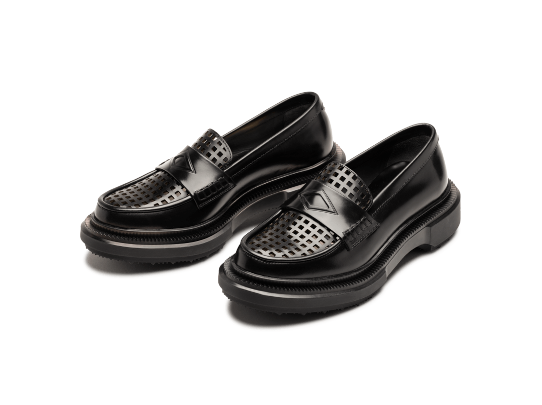 Polished leather loafer, injected rubber sole