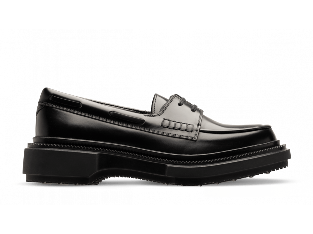 Polished leather deck derby, injected rubber sole