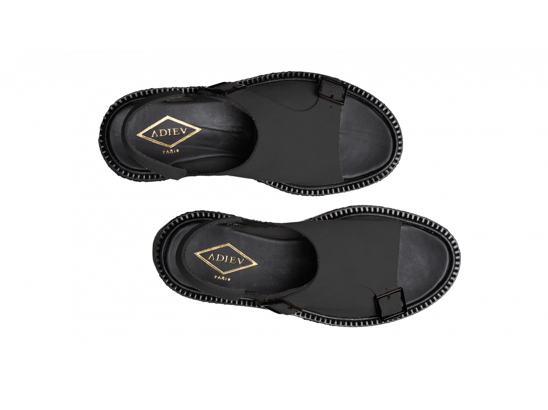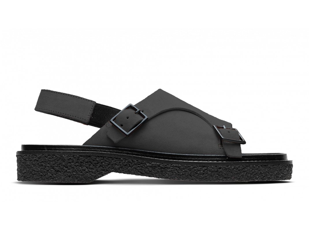 Waxed suede buckled sandal, crepe sole