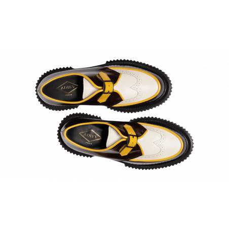 Polished leather buckled derby, injected rubber sole