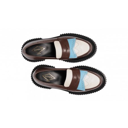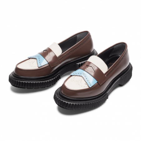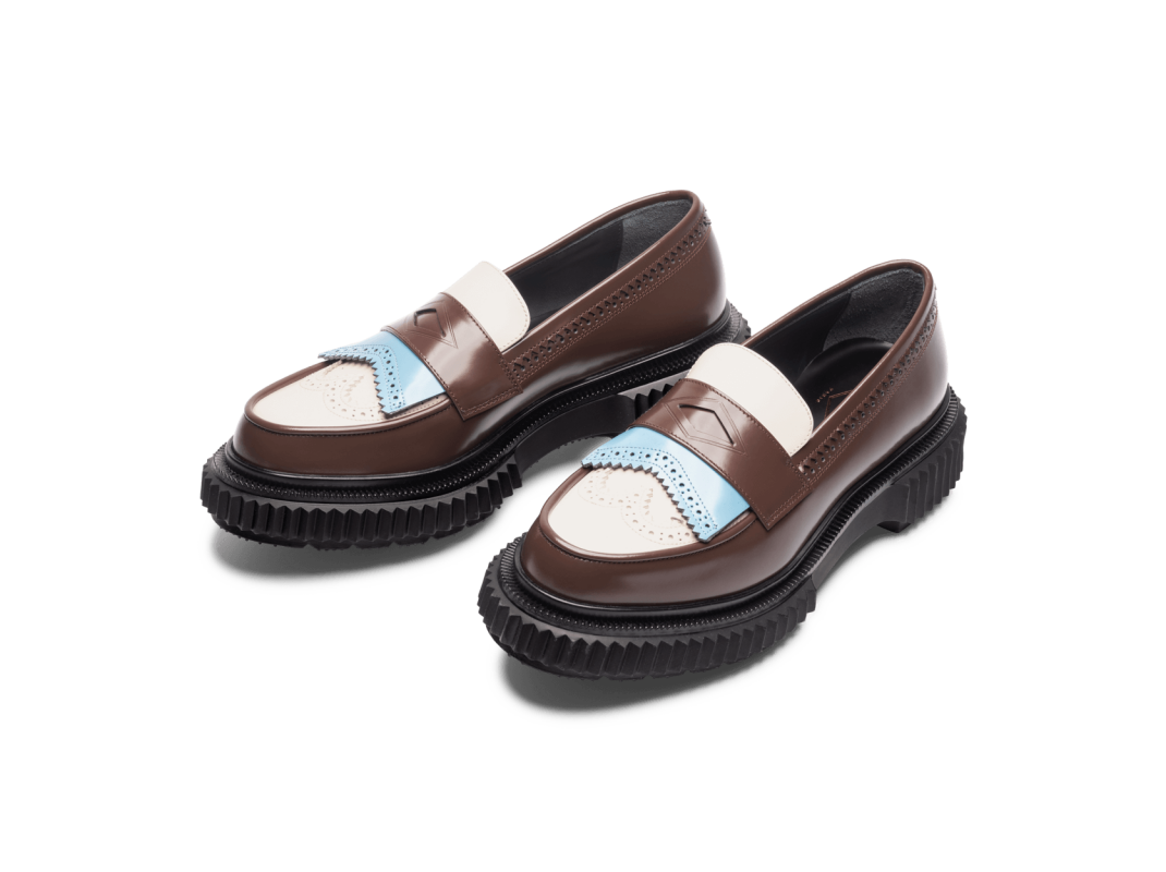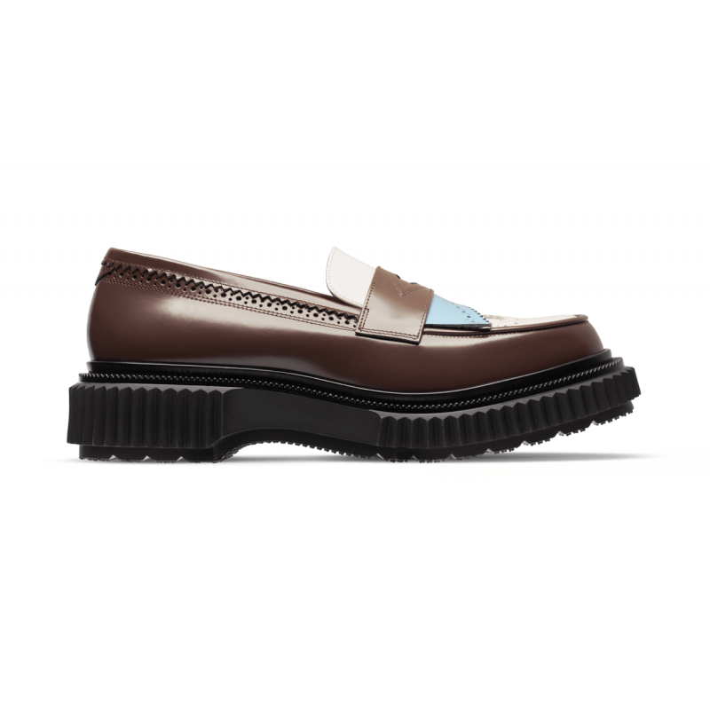Polished leather loafer, injected rubber sole