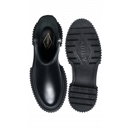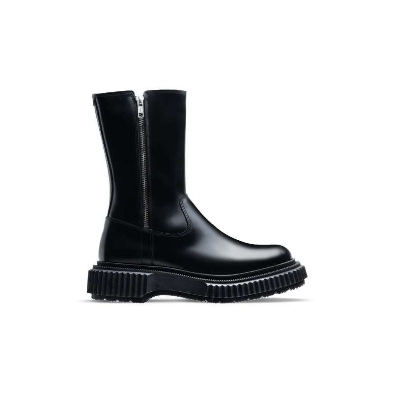 Polished leather zipper high boots, injected rubber sole
