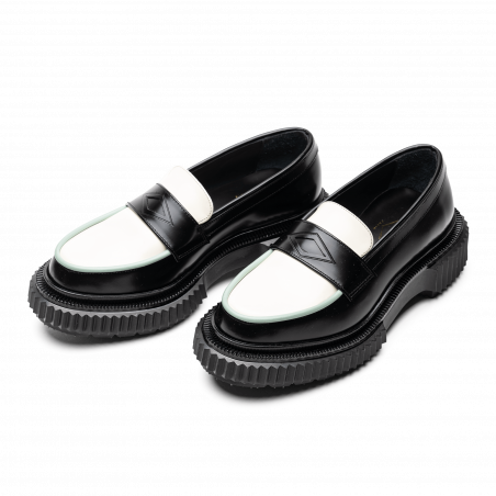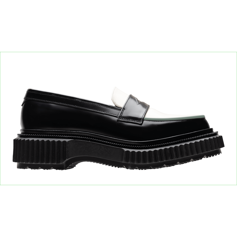 Polished leather loafer, injected rubber sole