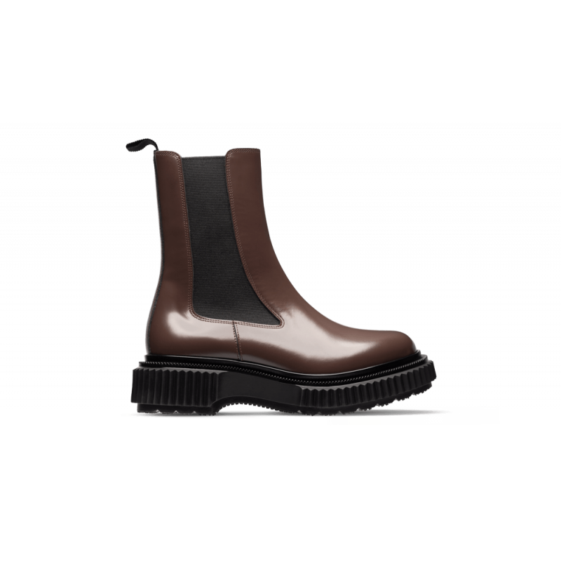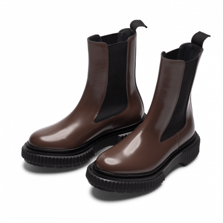 Polished leather high chelsea boots, injected rubber sole