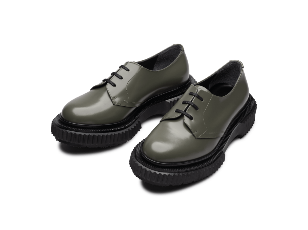 Polished leather derby, injected rubber sole