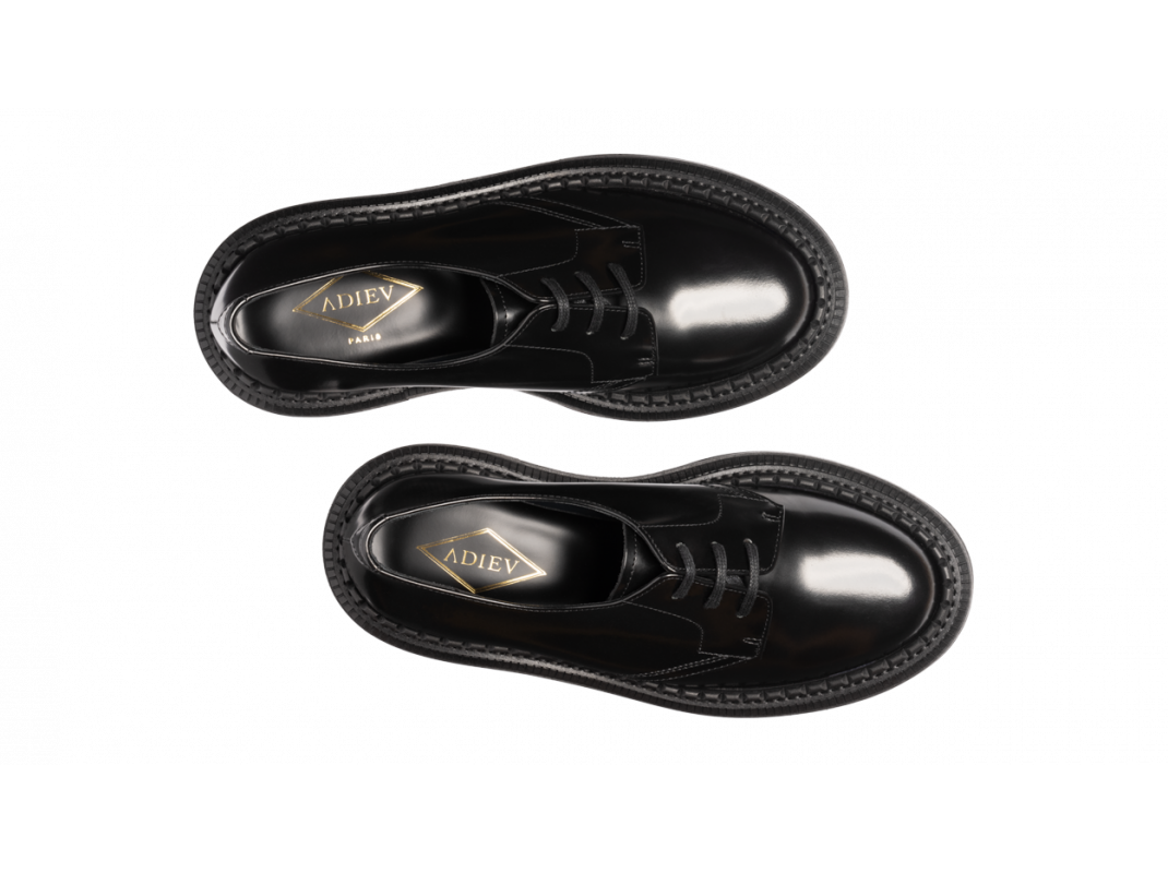 Polished leather platform derby, leather and crepe sole