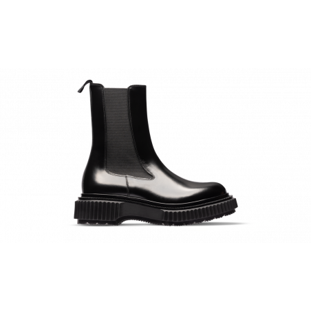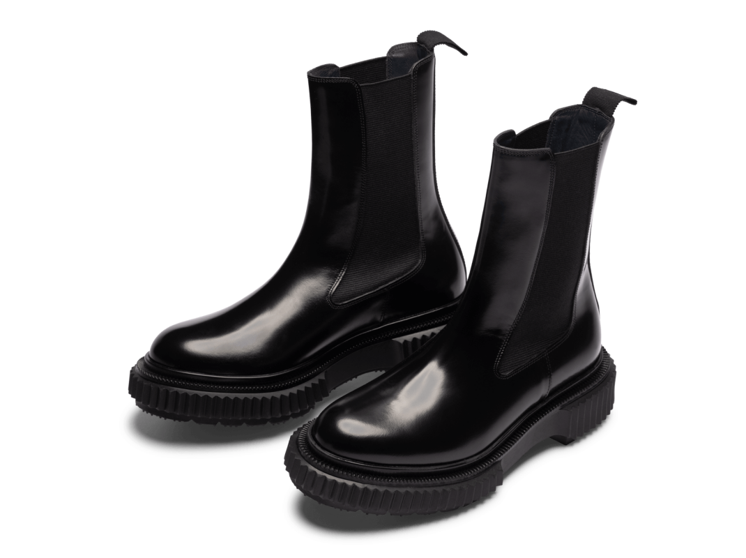 Polished leather high chelsea boots, injected rubber sole
