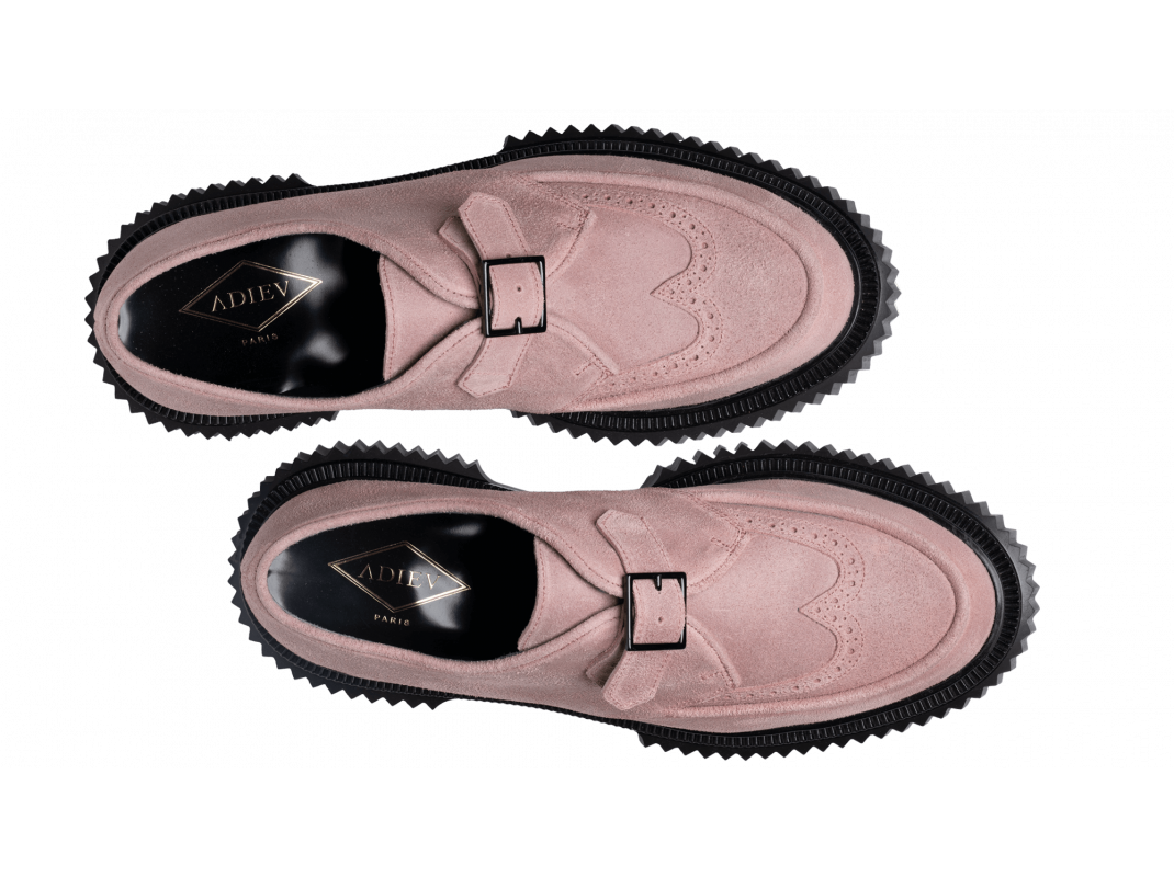 Suede leather buckled derby, injected rubber sole
