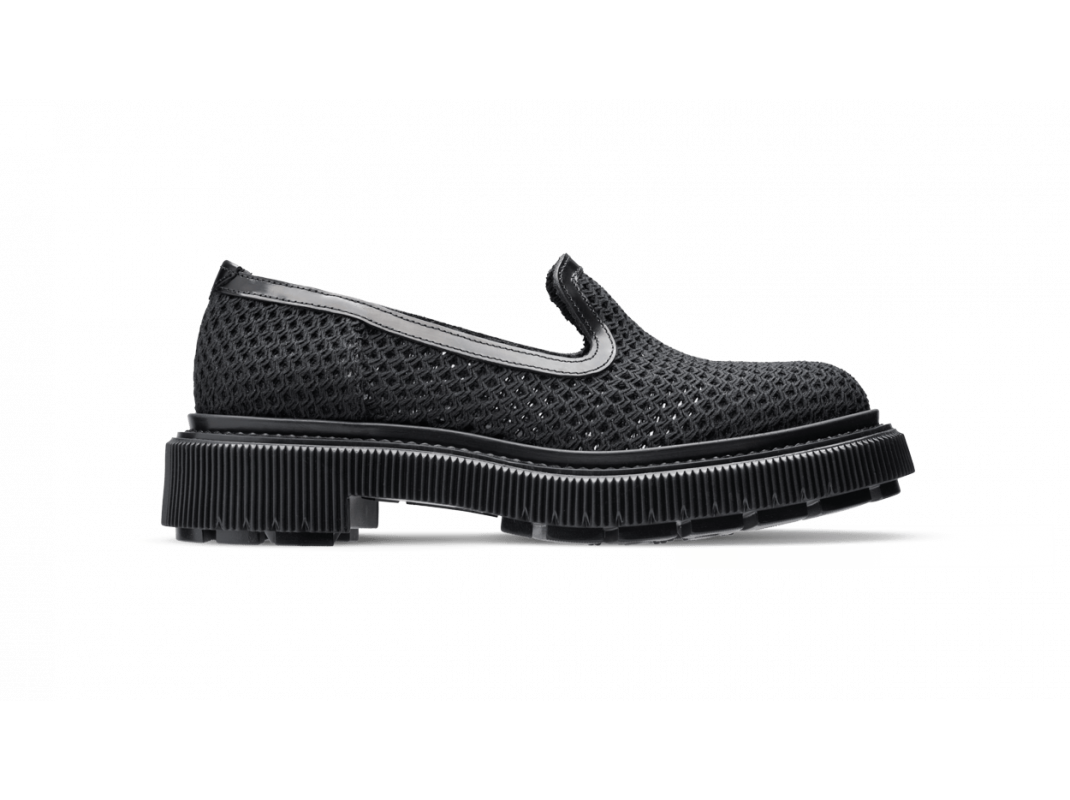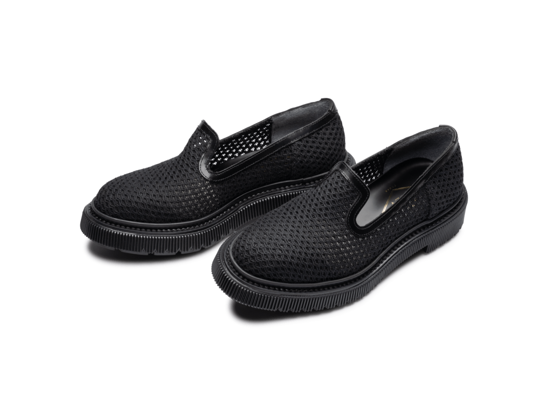 Cotton fishnet and leather slipper, injected rubber sole