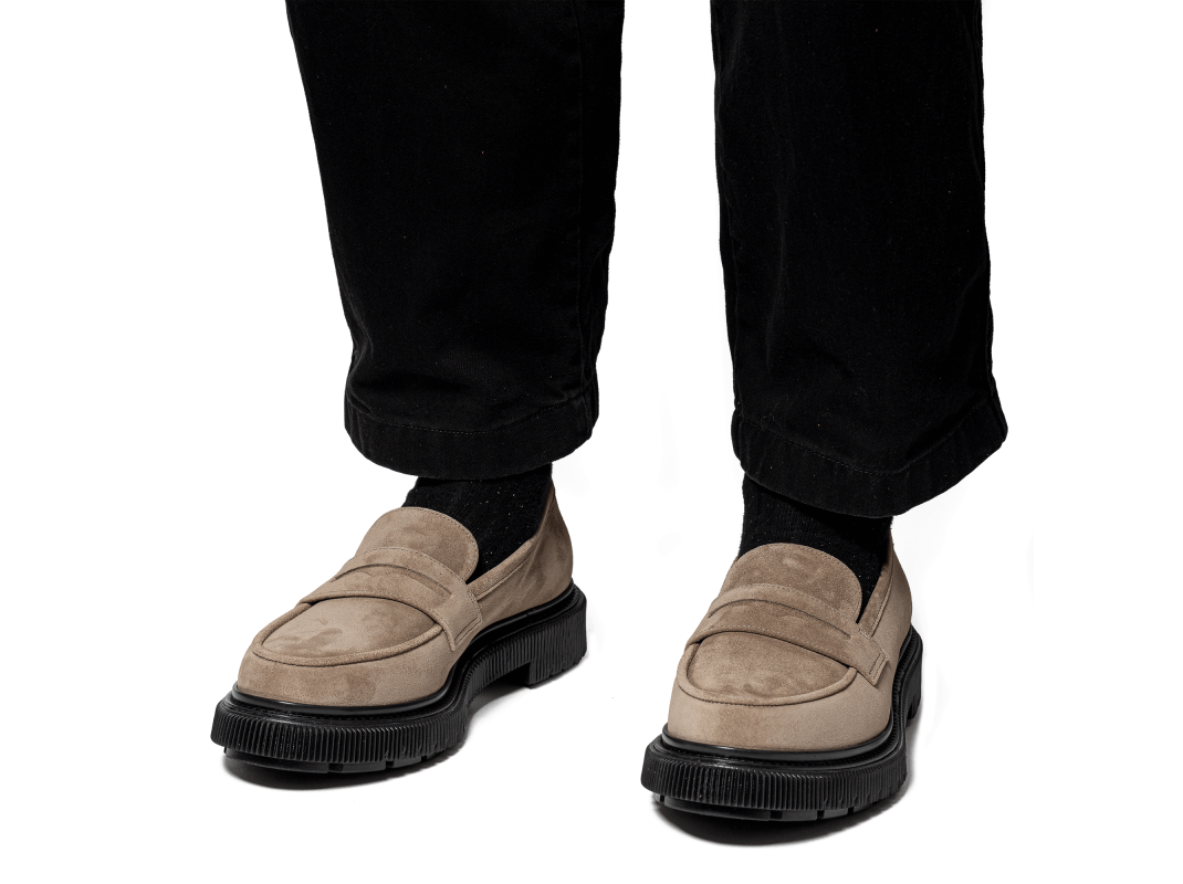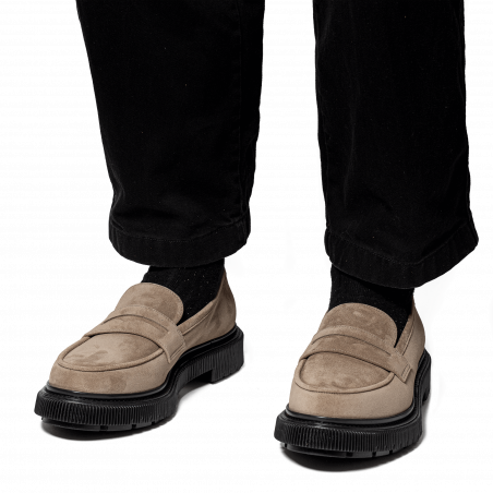 Mocassin en daim, semelle en caoutchouc injecté