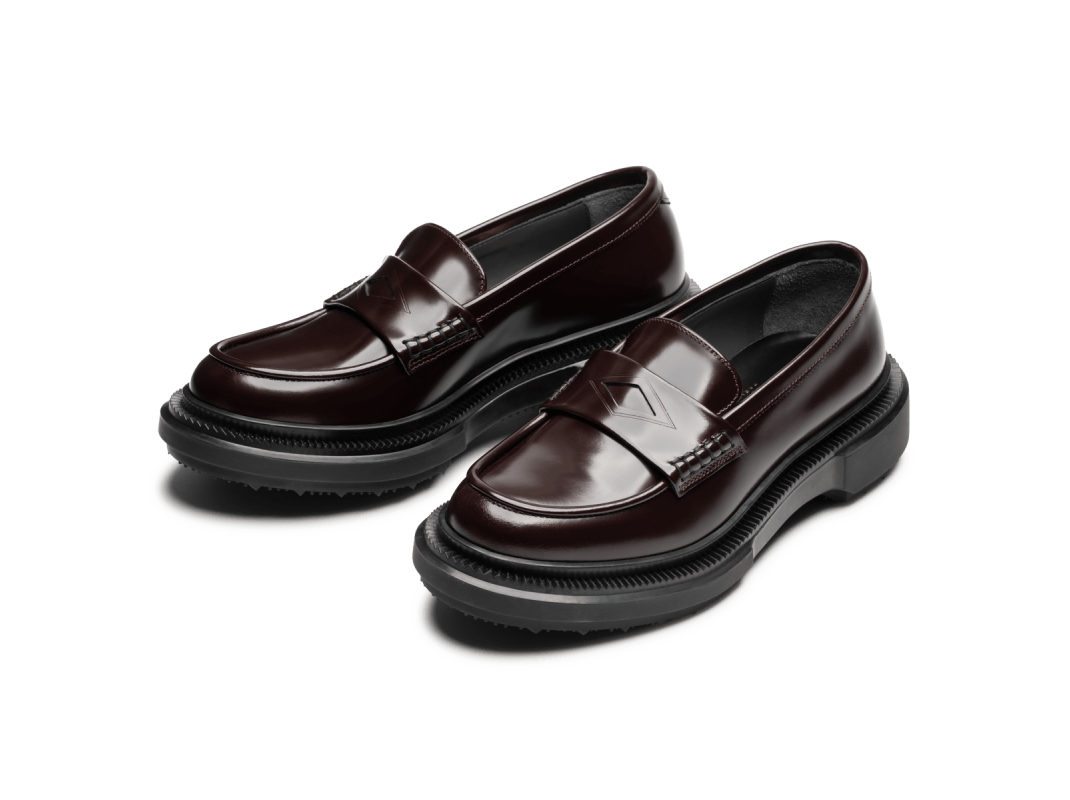 Mocassin en cuir ciré, semelle en caoutchouc injecté