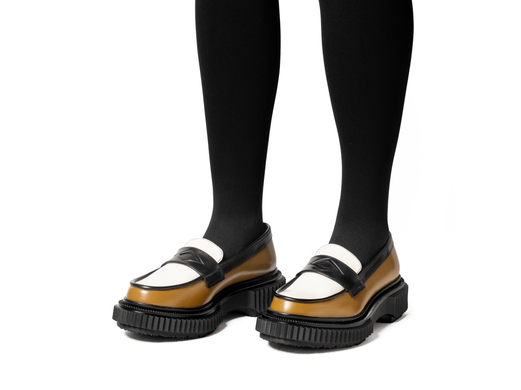 Mocassin en cuir ciré, semelle en caoutchouc injecté