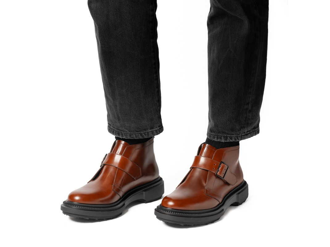 Low boots à boucles en cuir ciré, semelle en caoutchouc injecté