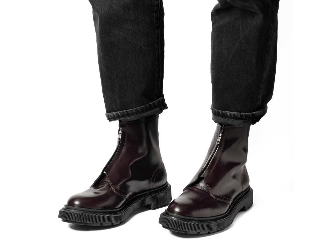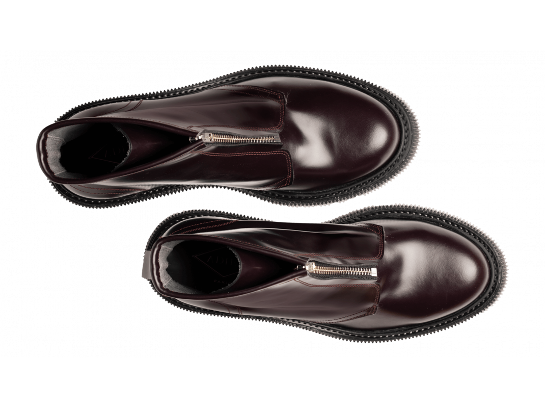 Boots à zip en cuir ciré, semelle en caoutchouc injecté