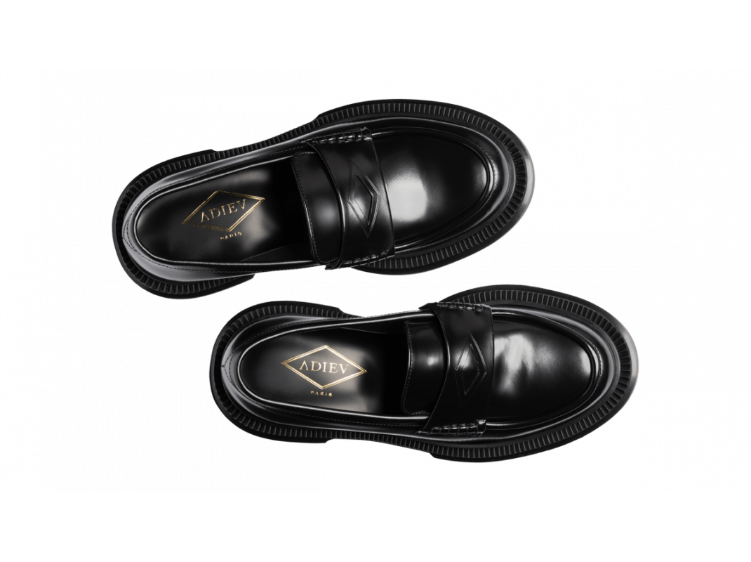 Mocassin en cuir ciré, semelle en caoutchouc injecté