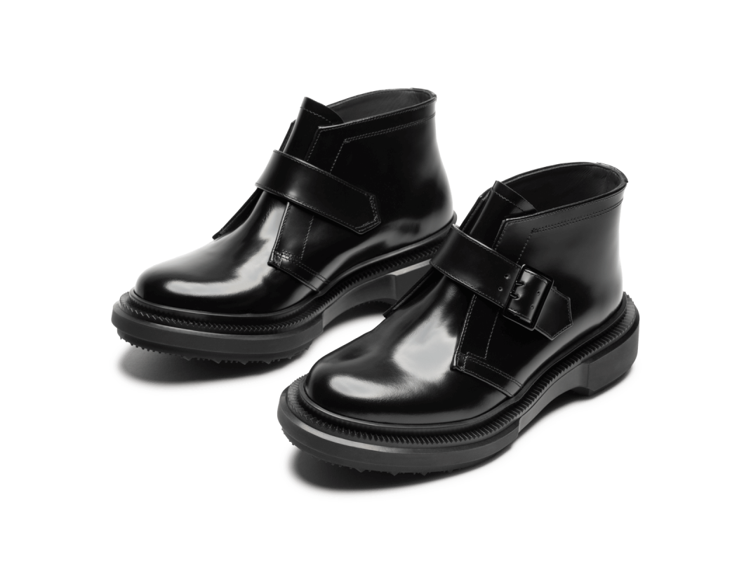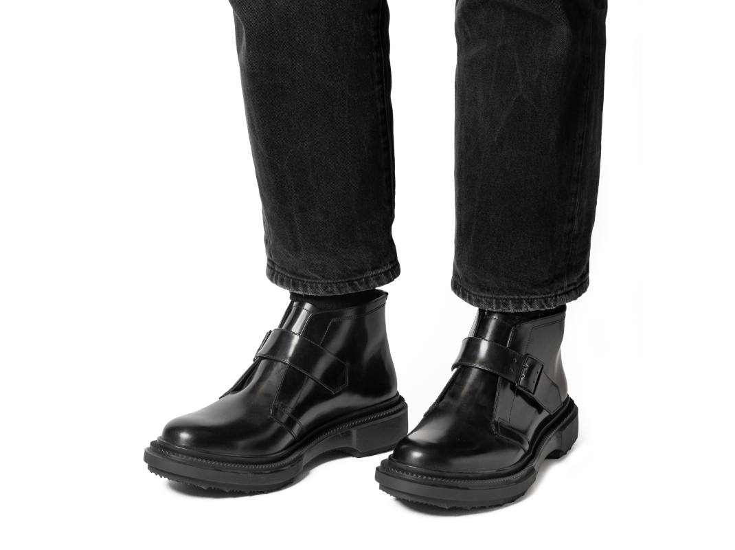 Low boots à boucles en cuir ciré, semelle en caoutchouc injecté