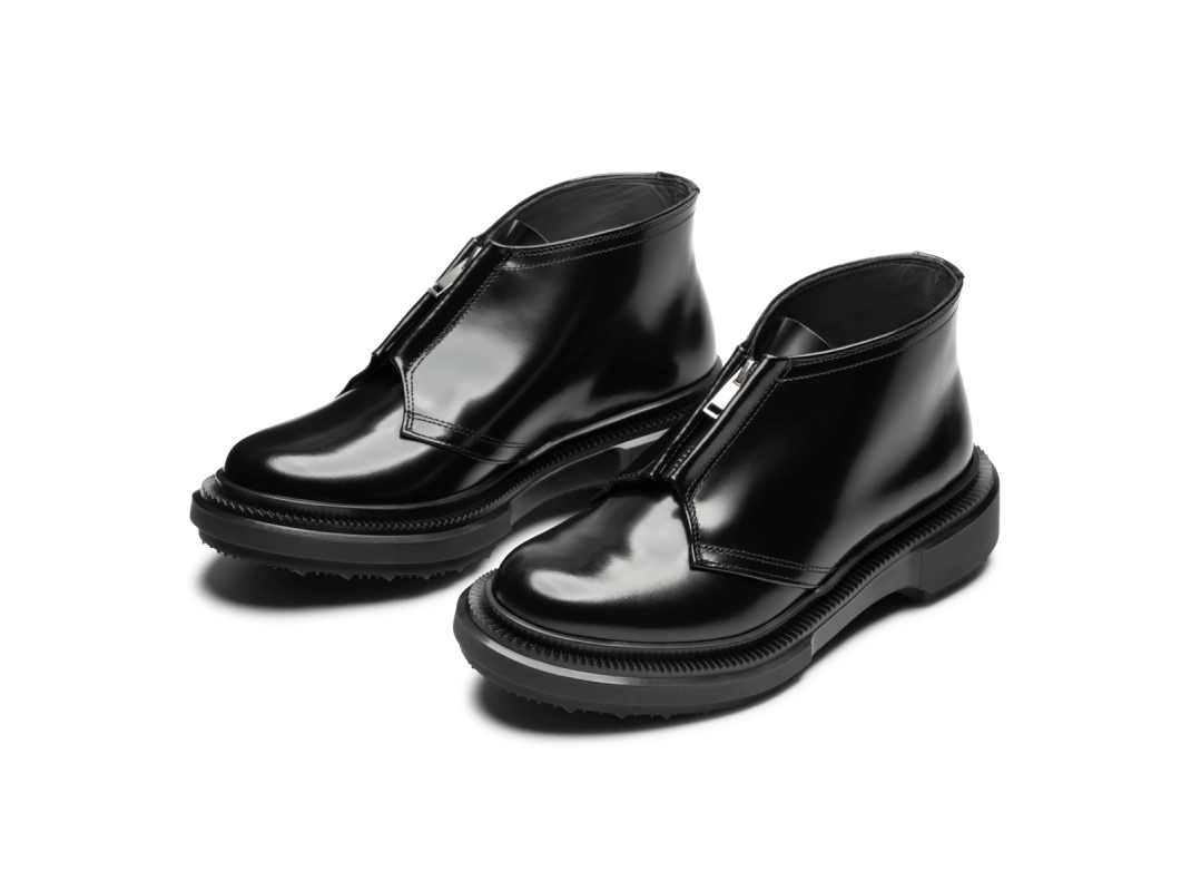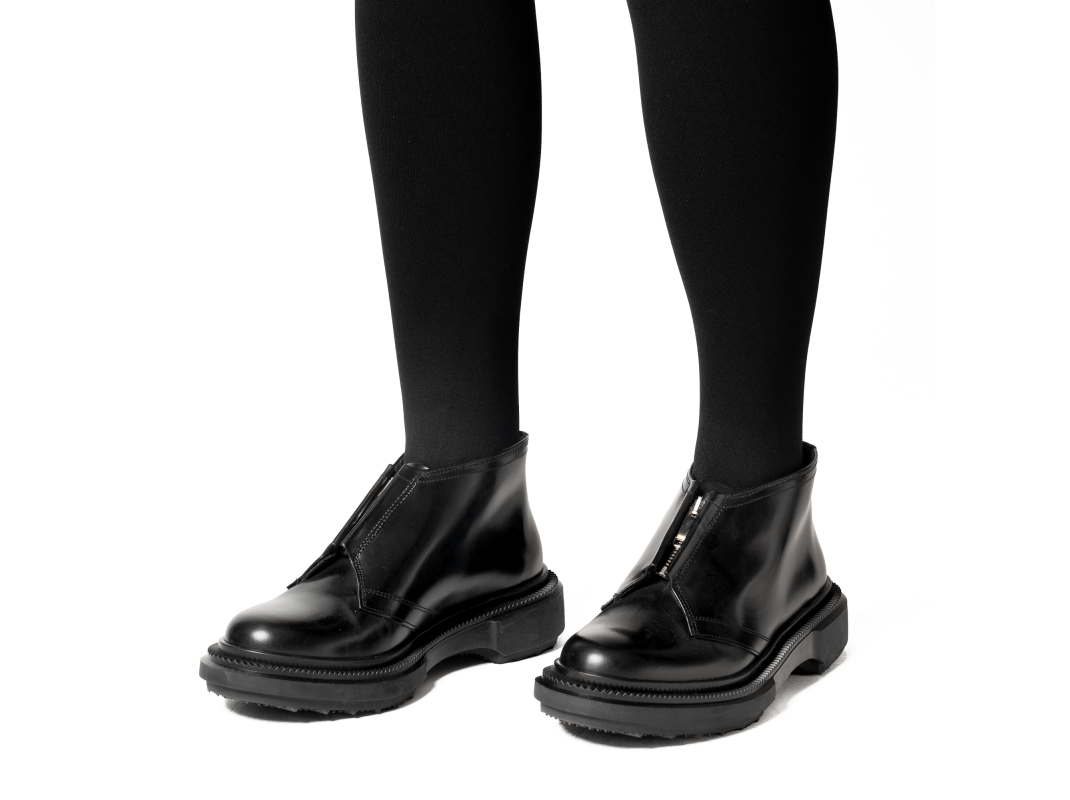 Low boots à zips en cuir ciré, semelle en caoutchouc injecté