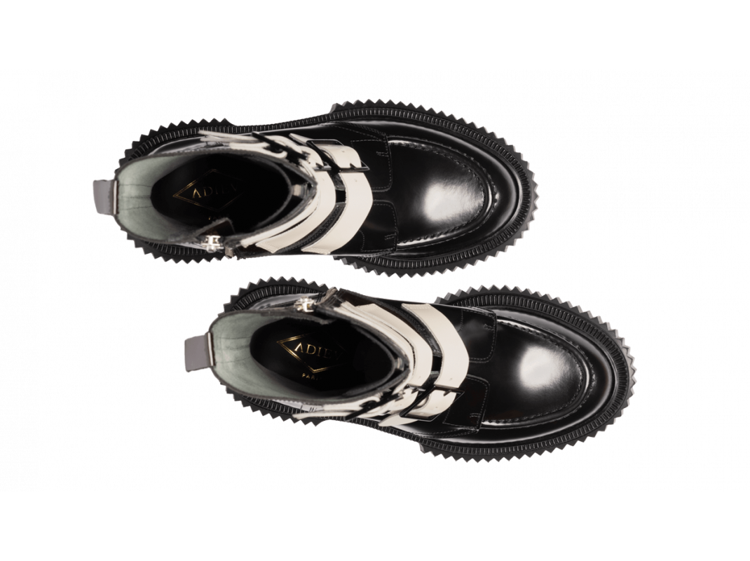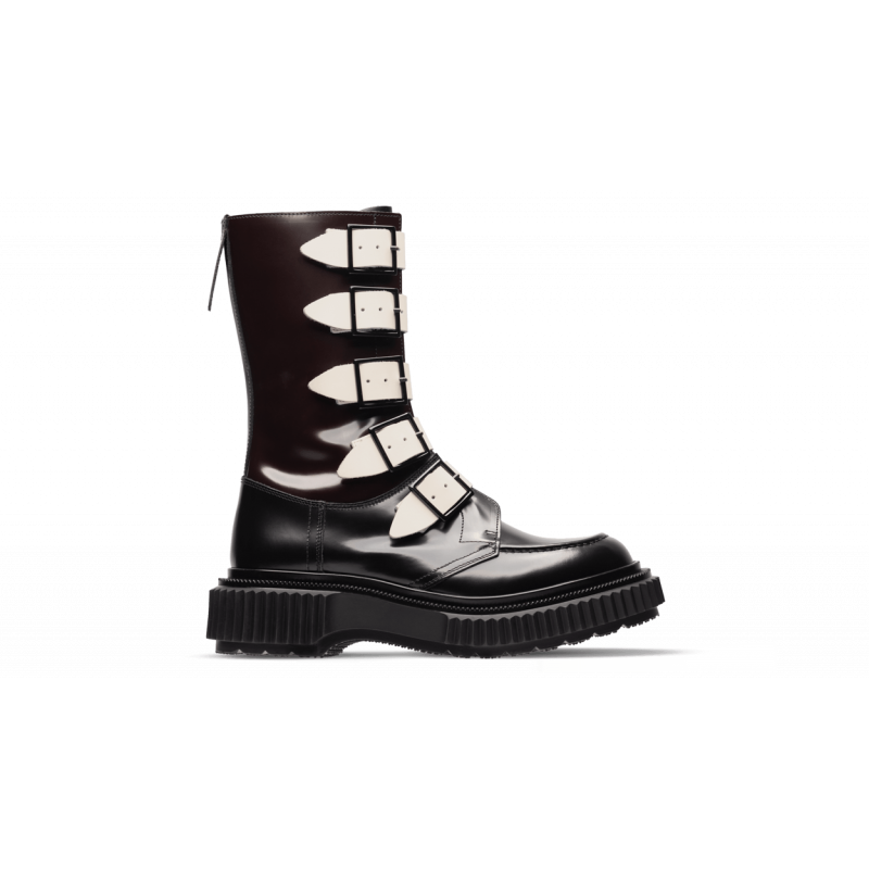 Boots montantes à boucles en cuir ciré, semelle en caoutchouc injecté