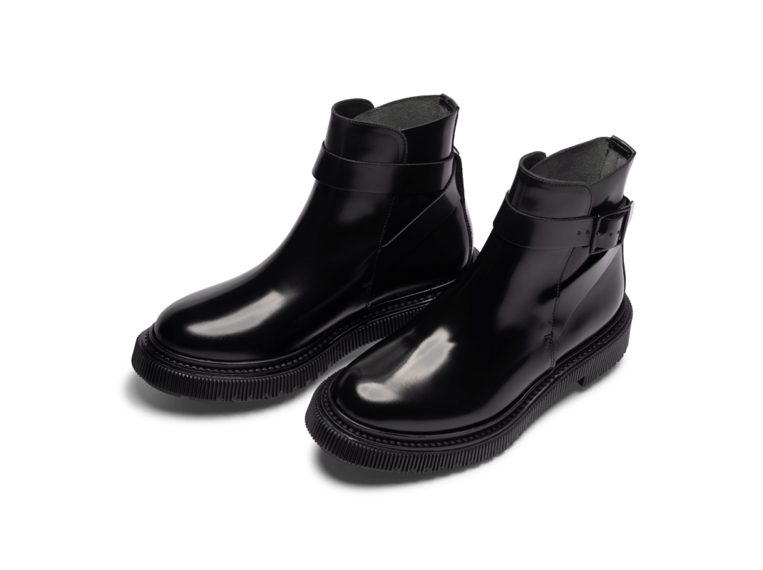 Boots à boucle en cuir ciré, semelle en caoutchouc injecté