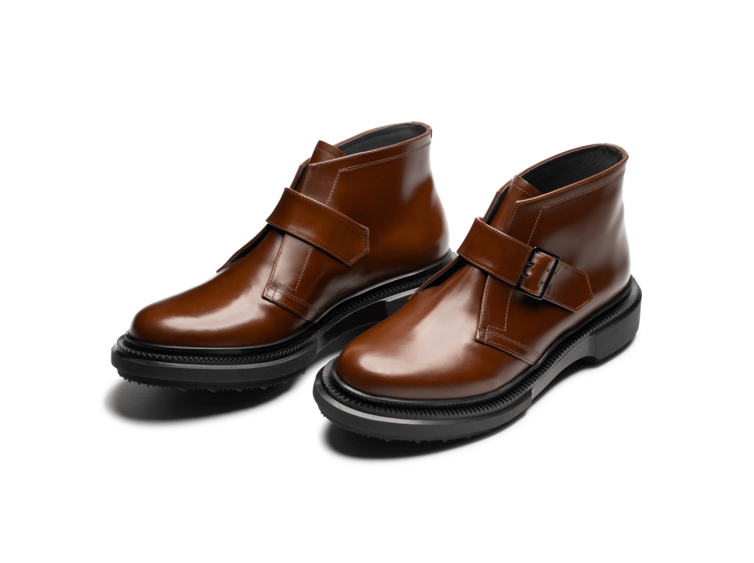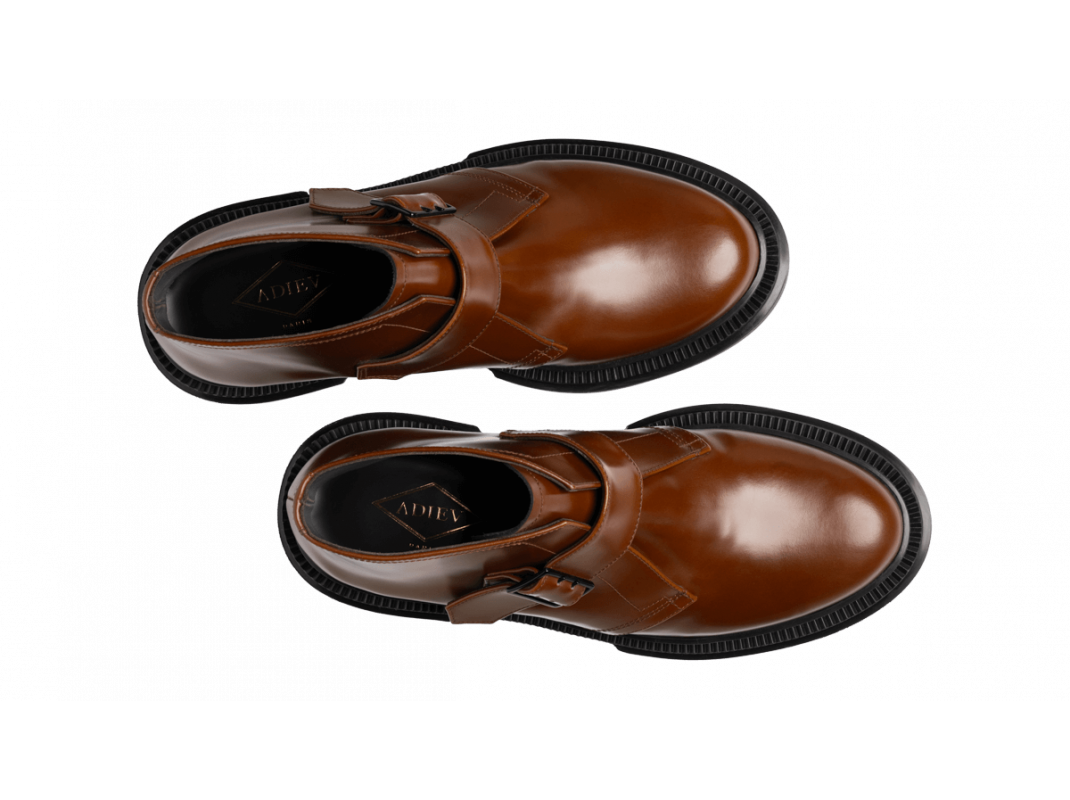 Low boots à boucles en cuir ciré, semelle en caoutchouc injecté