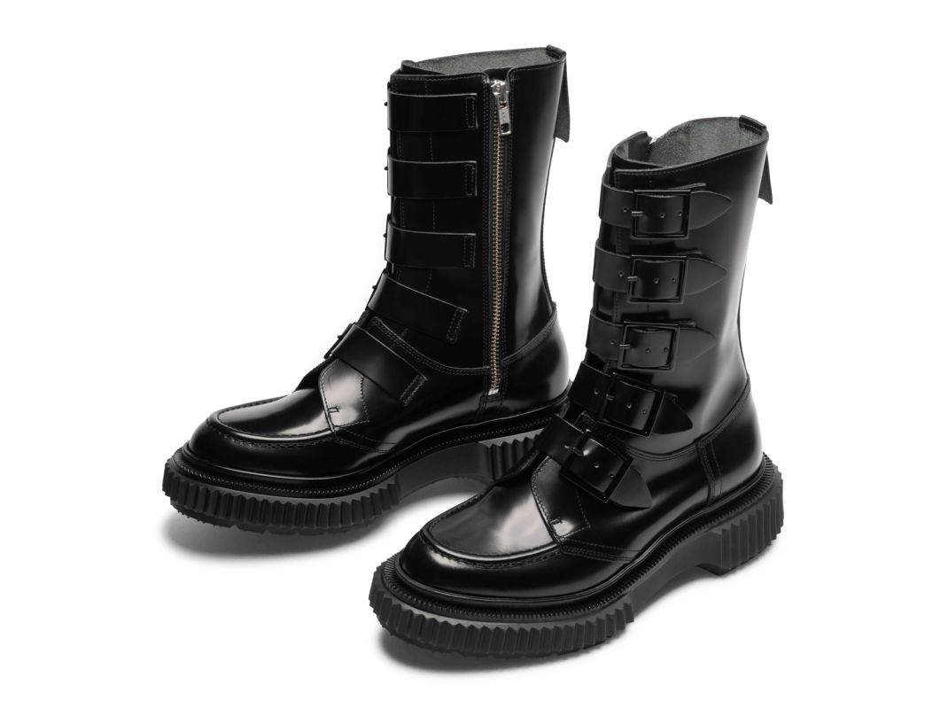 Boots montantes à boucles en cuir ciré, semelle en caoutchouc injecté